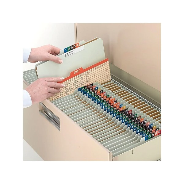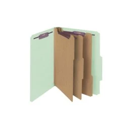 - Gray/green 25 pt. pressboard cover with three kraft dividers