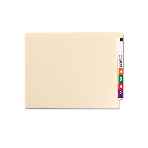 Store forms or medical charts in these Smead Shelf-Master reinforced letter-size straight-cut manila file folders. These folders are made with 100% recycled content, making them an ideal choice for environmentally conscious businesses. Smead Shelf-Master reinforced letter-size straight-cut manila file folders have an undercut front panel to help labels stand out, ensuring readability.