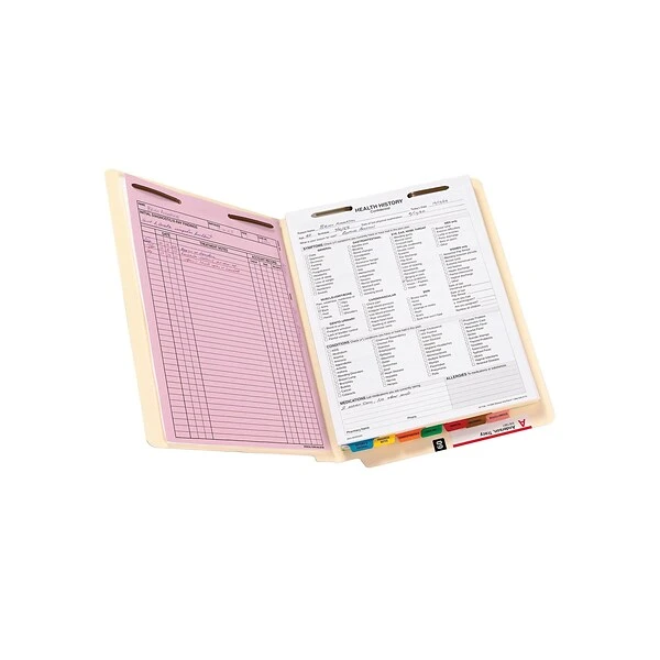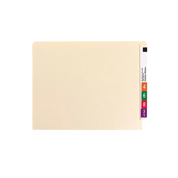 Organize client or patient documents with these Smead manila fastener file folders. Shelf-Master reinforced end tabs withstand heavy use, and the straight-cut tab design accommodates color-coded filing systems. Two sets of fasteners let you attach paperwork directly to each folder, ensuring sensitive information stays secure inside. Crafted from 100 percent recycled materials, these Smead manila fastener file folders offer a more sustainable file storage solution.