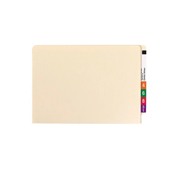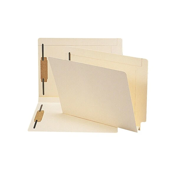 Keep documents sorted with these manila file folders. The straight-cut end tabs provide space for subject labels, and the durable construction stands up to frequent handling. Each of the embedded fasteners holds paperwork securely in place, so you can flip through pages effortlessly. With W-fold edges, these Smead Shelf-Master fastener folders accommodate thick stacks of paper.