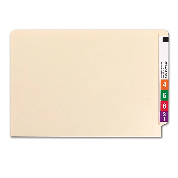 Keep patient or client files neatly sorted with these Smead end-tab legal-size manila file folders. Embossed lines on the straight-cut tabs create a guide for adding labels, and the reinforced construction withstands daily handling to prevent rips or bends in the tabs. These Smead end-tab legal-size manila file folders feature 11-point stock construction for added strength and resilience, making them ideal for use in medical, dental or legal practices.
