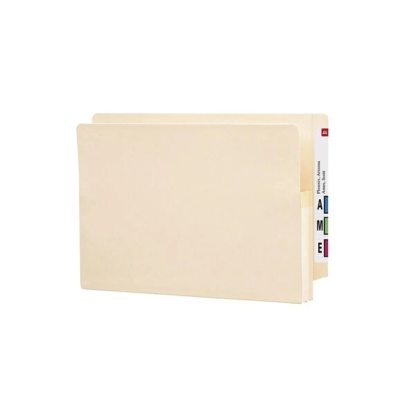 Give a shelf filing system an overhaul with these legal-size manila file pockets. The straight-cut end tabs provide ample space for color-coded alphanumeric labels, and the 1.75-inch expansion capabilities accommodate thick stacks of paper. Each folder features reinforced gussets to resist ripping and tearing. These Smead tab file pockets are crafted from sturdy manila stock for added durability.