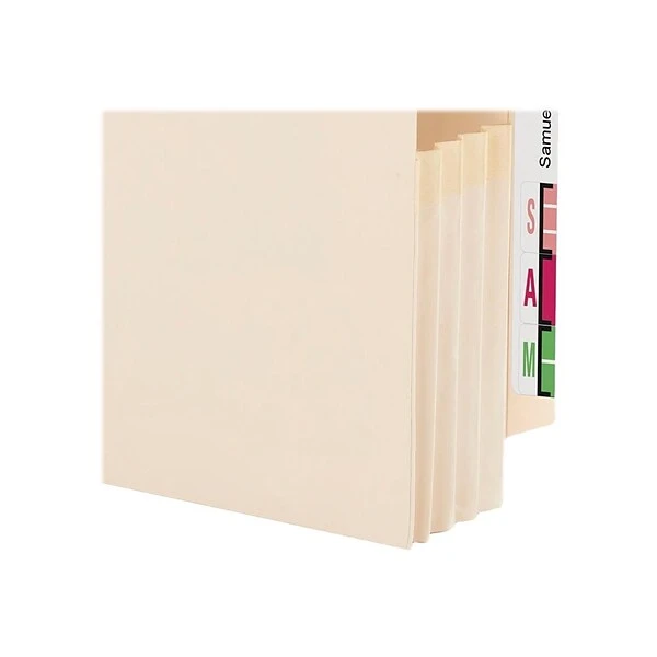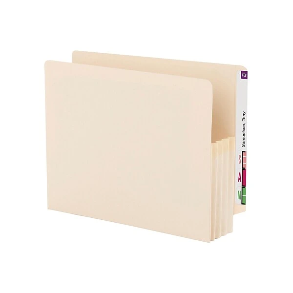 Archive contracts, statements and other documents with these end tab file pockets. With a 3.5-inch expansion capacity, these pockets offer plenty of room for multiple files, while the reinforced gussets prevent tears, providing enhanced durability for repeated filing. These Smead letter-size reinforced straight-cut tab manila file pockets come in a box of 25, so you can take on big filing projects easily.