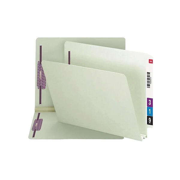 Get complex files organized with these pressboard fastener file folders. The sturdy 25-point pressboard construction of these file folders protects contents from wear and tear, while the straight-cut tabs offer ample space for applying or handwriting labels. These Smead SafeSHIELD end-tab pressboard fastener file folders prevent finger cuts, paper tears and fastener crinkling for a premium filing experience.