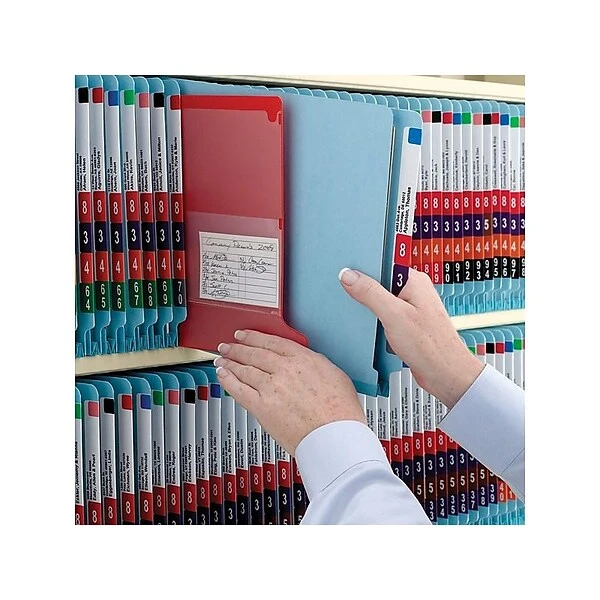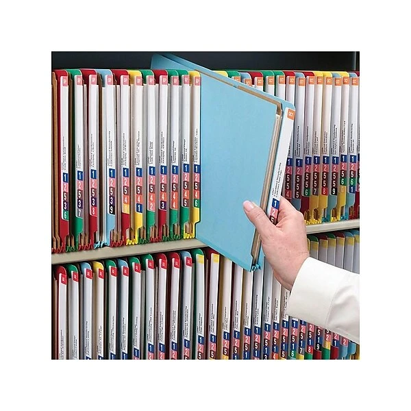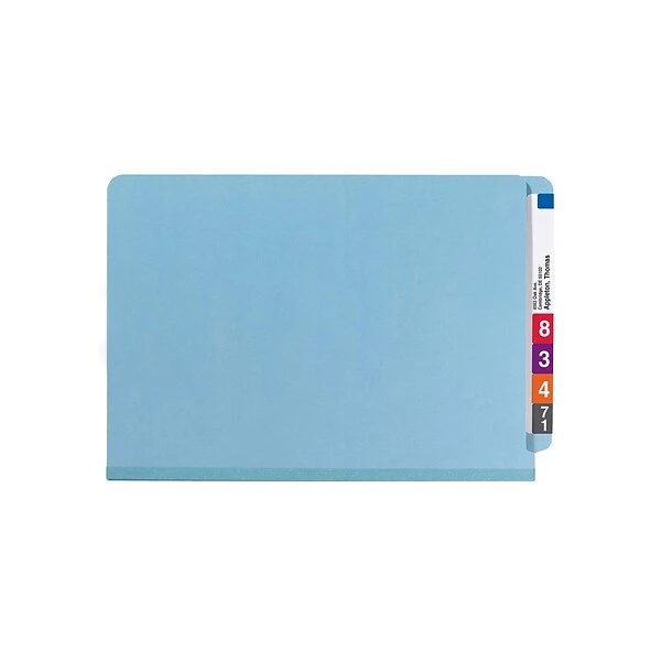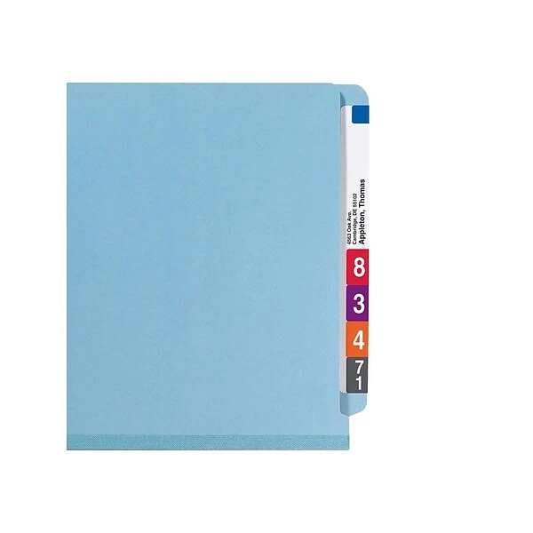 Make large files easier to browse with these legal-size classification file folders. The SafeSHIELD fasteners protect you from cuts while holding papers secure, and the 23-point pressboard material offers added durability. These Smead SafeSHIELD end-tab classification file folders have two dividers that work with the fasteners to provide six filing surfaces, so even the largest files become manageable.