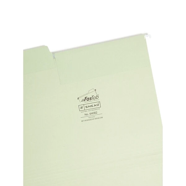 The moss-green color differentiates itself from other colors when you have a color-coded filing system. Plastic tabs on either end of the hanging file folders keep documents secure and within easy reach, while the built-in tabs eliminate the need for removable plastic folder tabs that take extra staff time to make, print and install.