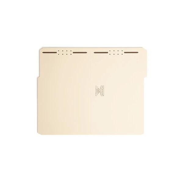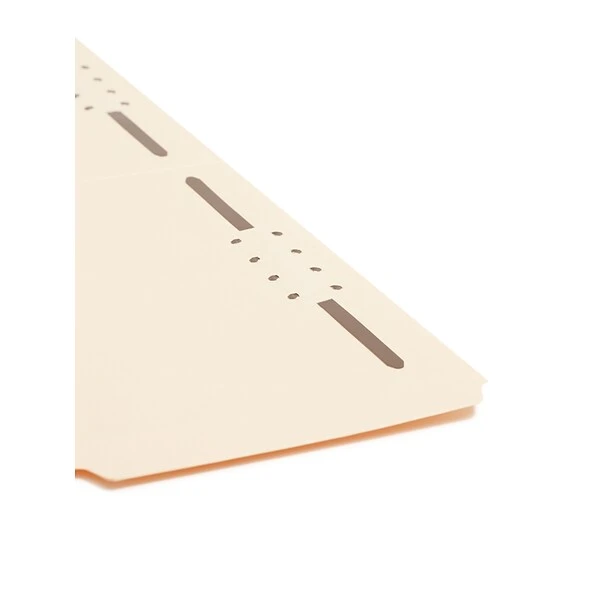 Get files in order with these legal-size two-fastener manila file folders. The 1/3-cut-tab design offers ample room for applying or handwriting labels, while the 11-point manila stock makes these folders durable. These Smead manila file folders come in a box of 50 and have two fasteners that hold documents firmly in place and let you subdivide them into major groups.