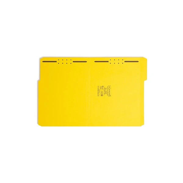 Give your client files a professional appearance with these Smead letter-size fastener folders. The integrated 2K-style fasteners let you organize and secure documents inside, while the reinforced 1/3-cut tab layout ensures file labels remain visible inside your cabinet drawers. With their bright yellow hue, these Smead letter-size fastener folders are perfect for use in color-coded filing systems.