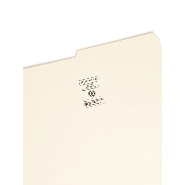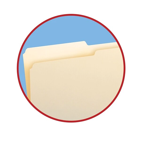 Create an organized filing system with these Smead legal-size manila file folders. The 1/2-cut tab layout provides abundant space for labeling while keeping each tab easy to see, and the sturdy standard thickness paper stock construction stands up to everyday handling in the busiest of offices. With rounded corners, these Smead legal-size manila folders resist catching or tearing on cabinet drawers.