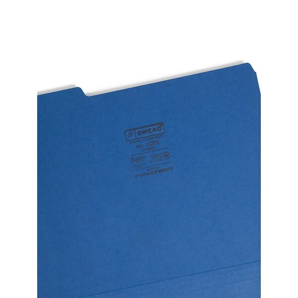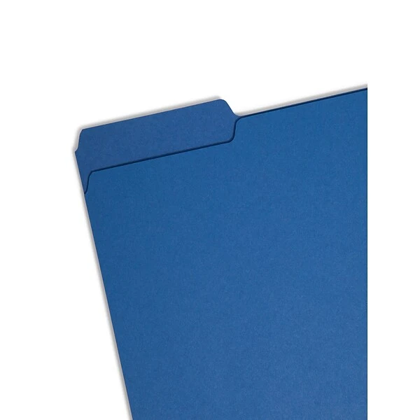 Keep file drawers organized with these Smead letter-size interior file folders. A bright navy color lets you call out VIP files, while the 1/3-cut tab design allows for easy labeling. The convenient size fits neatly inside of hanging files, keeping tabs visible for efficient filing. These Smead letter-size interior file folders feature sturdy 11-point construction for added durability.