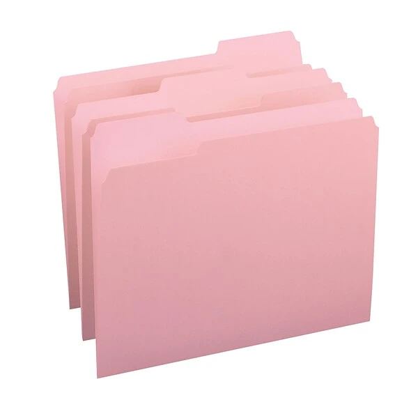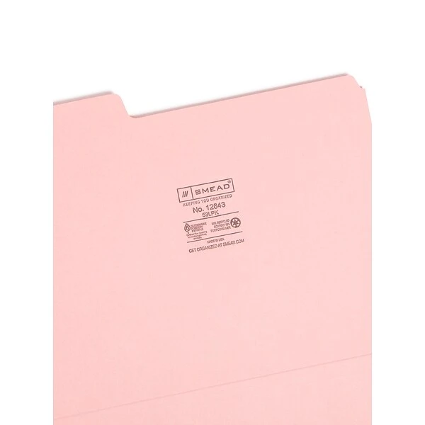 Minimize paper clutter in your home or office by using these letter-size file folders. Featuring assorted tab placement, these folders let you view labels quickly for easy document location, while the 11-point construction provides enhanced sturdiness. These Smead 1/3-cut tab file folders come in a noticeable pink color, so categorizing and color-coding files is simple.