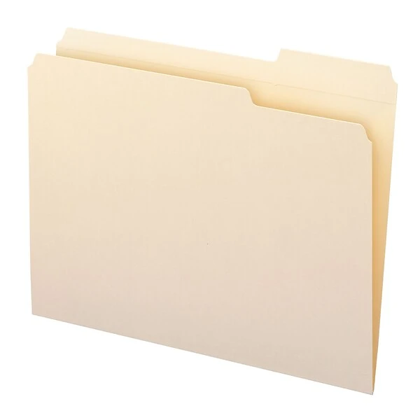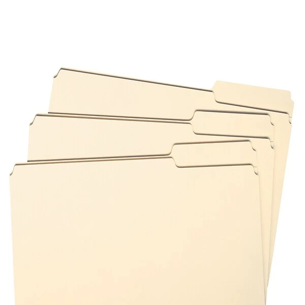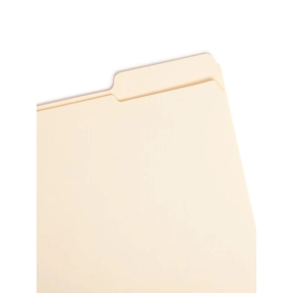 Manage office paperwork and numerous client or patient files with this 100-count box of Smead file folders. The 1/3-cut tabs are readily visible for identifying needed files quickly, and the standard thickness manila material is easily integrated into existing filing systems and protects documents. Reinforced 2-ply tabs on these Smead file folders handle large or bulky contents and hold up to frequent handling.