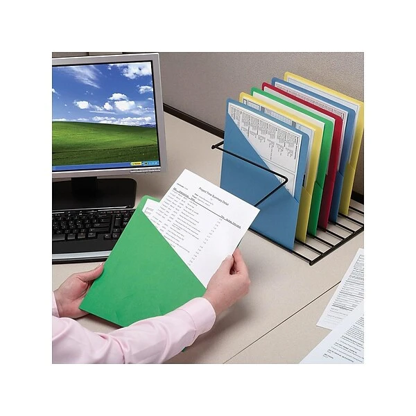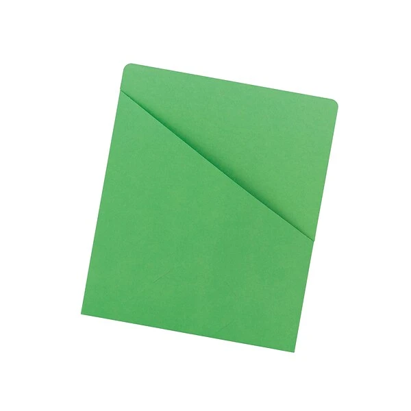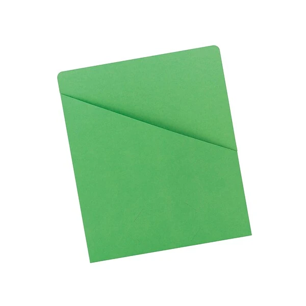 Organize documents easily with these slash jackets. Featuring a die cut, these slash jackets make a great choice for holding business cards and giving professional information high exposure, and the angled front makes it easy to view papers at a glance. These Smead green slash jackets come with 25 units per pack and are closed on three sides to keep papers from falling out.