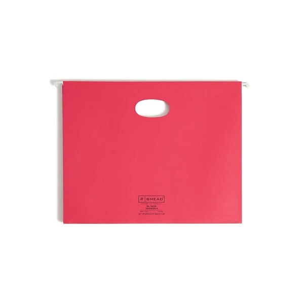 Keep large sets of paperwork together by using these letter-size hanging file pockets. Sold in a pack of four, these pockets can easily reduce clutter around the office, home, or classroom. These Smead assorted colors hanging file pockets are made with a durable bottom and sides, keeping documents contained and preventing them from slipping out when removing the pocket.