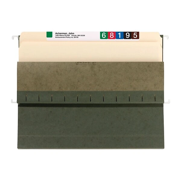 Ensure documents stored in lateral file drawers are easy to find with these Smead hanging box-bottom folders. The metal hooks attach securely to hanging drawer frames, while the reinforced edges stand up to frequent use. Each folder features a 2-inch expansion, making it easy to file away brochures, catalogs, and bulk documents. These Smead hanging box file folders are crafted from sturdy 11-point stock for strength and durability.