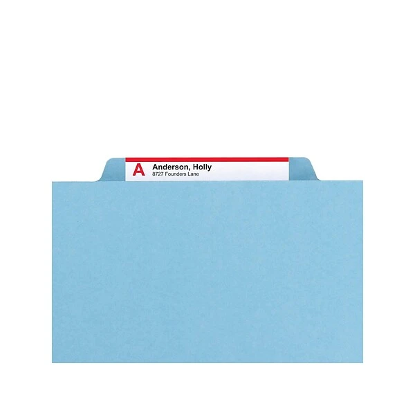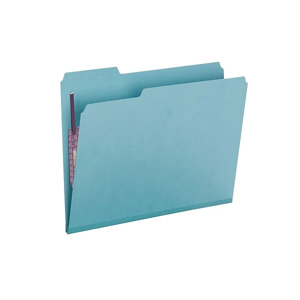 Store and organize your files with these Smead pressboard blue file folders. SafeSHIELD fasteners help subdivide files into various categories and keep documents secure, while a 2-inch expandable file gusset provides plenty of space for even large stacks of papers. These Smead pressboard file folders are made from sturdy 25-point pressboard to keep important documents safe.