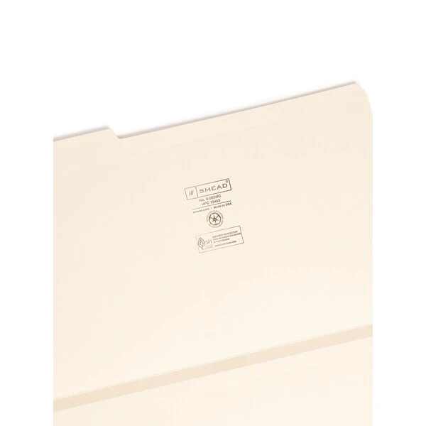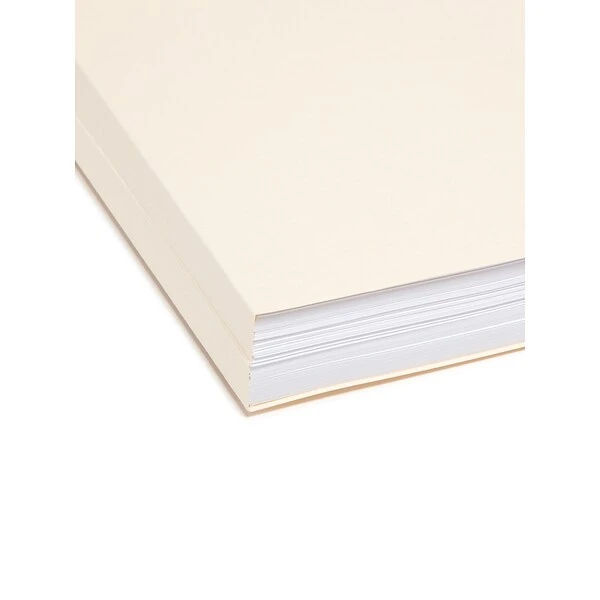 Manage paperwork clutter with these file folders. Made from 14-point manila stock, these folders have enhanced durability for long-term use. The 1/3-cut assorted-position tabs make it easy to read names, subjects and other labels. These Smead legal-size file folders feature a W fold, offering a 1.5-inch expansion capacity to accommodate multiple document sets.