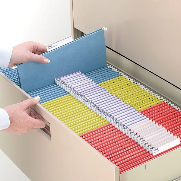 Long tabs and labels let you put plenty of information to identify the contents of the folders, whether you prefer fewer letters with large type or lots of letters with smaller type among two or three lines of text. Tabs slide easily from one end of the folder to another for a slightly staggered approach or a 1/3 cut appearance in your file cabinet. Blank white inserts have the option for printing on your computer or hand-writing labels depending on your needs.