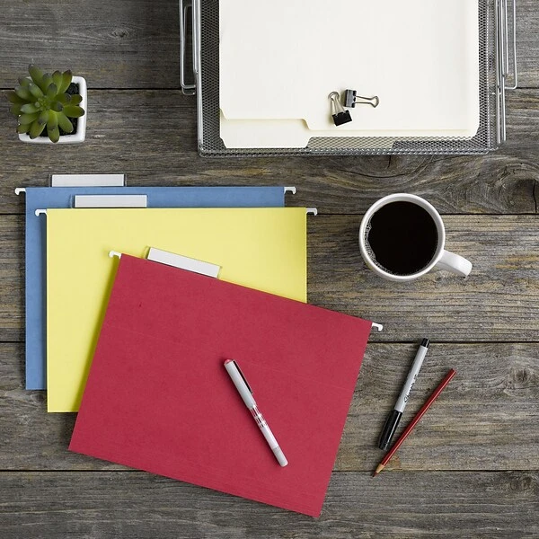 Reinforced channel rods that keep these hanging file folders in place are 40 percent stronger to reduce the paper from tearing and the rods from bending. The 11-point stock protects the ordinary paper inside the folders from bending, ripping, tearing and folding so your documents stay intact through everyday use or in an archival setting. At seven times stronger than other kinds of file folders, this product holds up when containing a bowling ball inside the folder.