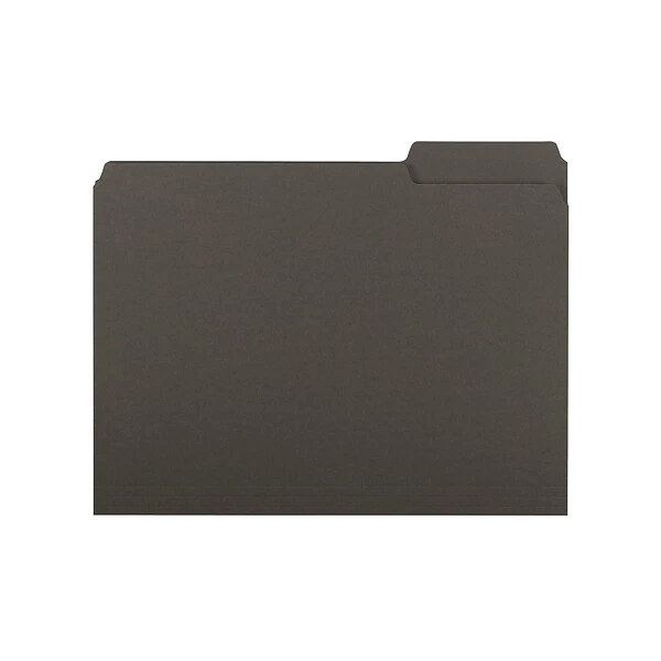 Keep documents organized by using these letter-size interior file folders. Designed with assorted tab placement, these folders can be arranged next to each other while still providing a clear view of titles. These Smead 1/3-cut tab file folders are made from 11-point stock for increased sturdiness and durability, and the black color makes color-coding specific subjects, clients, and other categories easy.