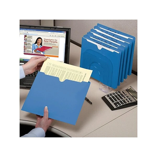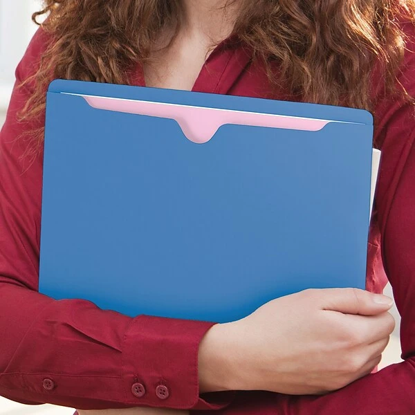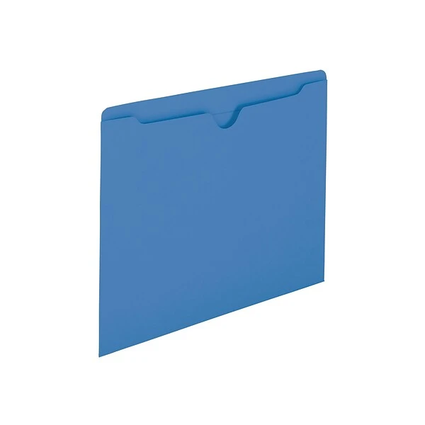 Prepare documents for clients, customers or staff with these letter-size file jackets. The straight-cut tabs provide abundant space for custom labels, and the thumb-cut fronts give you easy access to the pages stored inside. Three-sided closures prevent items from falling out, making these file jackets ideal for transporting paperwork. These Smead file jackets hold up to 50 pages, offering convenient storage for reports, forms and other files.