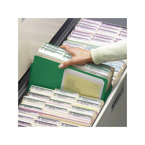 Color-code files easily with this green file pocket. This folder is made from 11-point stock for increased durability, and the tear resistant reinforced gussets provide enhanced strength at critical points. This Smead 3.5-inch expansion file pocket has a straight-cut tab, offering plenty of space for labeling, while the drop-front panel provides quick access to statements, forms and other paperwork.