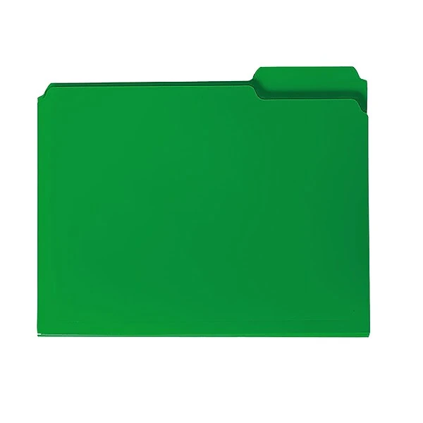 Sort classroom papers, office documents or other important paperwork in these Smead letter-size poly folders. The bright green hue lets you color-code your filing system, while the tear-proof, water-resistant construction shields papers from damage. Each folder is made from acid-free materials, making them ideal for long-term file storage. These Smead letter-size poly folders feature a 1/3-cut tab layout, so it’s easy to add custom labels.