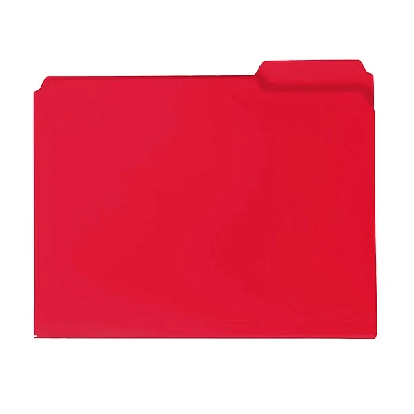 Keep critical files, forms and contracts organized in these Smead letter-size poly folders. The bright red color stands out in cabinet drawers, making important office paperwork easy to find. Each folder features a 1/3-cut tab, providing ample space for adding custom preprinted or handwritten labels. These Smead letter-size poly folders feature tear-resistant, water-resistant construction, making them a smart option for everyday use in your busy office.