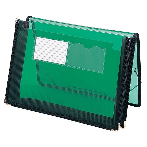 Protect important paperwork from moisture and damage with these letter-size poly wallets. The green translucent design lets you see the contents stored inside, while the heavy-duty cloth gussets and sewn fabric trim offer added protection against rips and tears. These Smead poly wallets feature fold-over flaps and elastic cords to prevent items from falling out.