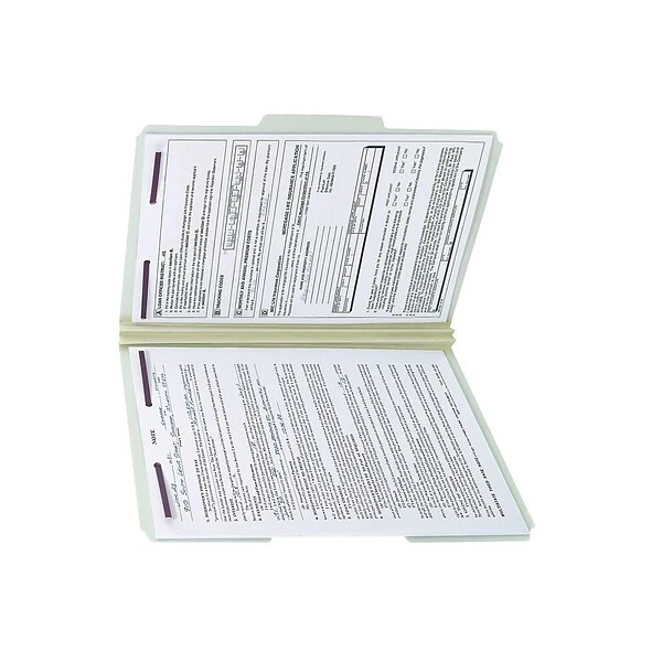 Get large files organized with these pressboard legal-size file folders. The SafeSHIELD coated fasteners help prevent crinkling, paper rips and finger cuts while letting you subdivide documents into two separate groups. These Smead pressboard file folders are constructed with sturdy 25-point pressboard for durability and are scored for 2-inch expansion, providing ample storage for thick stacks of paper.