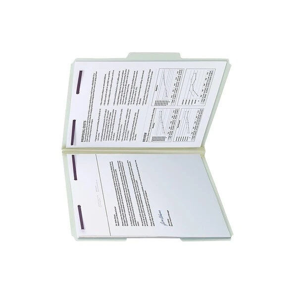 - Gray/green 25 pt. pressboard covers with one partition