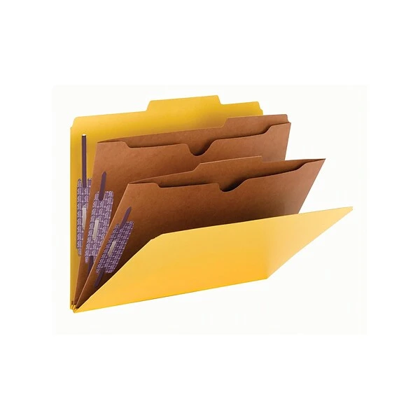 Get even the most complex files organized with these Smead classification folders. Each divider has a pocket for extra storage, while the SafeSHIELD coated fasteners protect fingers and hold documents securely without crinkling. These Smead classification folders expand up to 2 inches for handling large files, while the strong 25-point pressboard covers keep them safe.