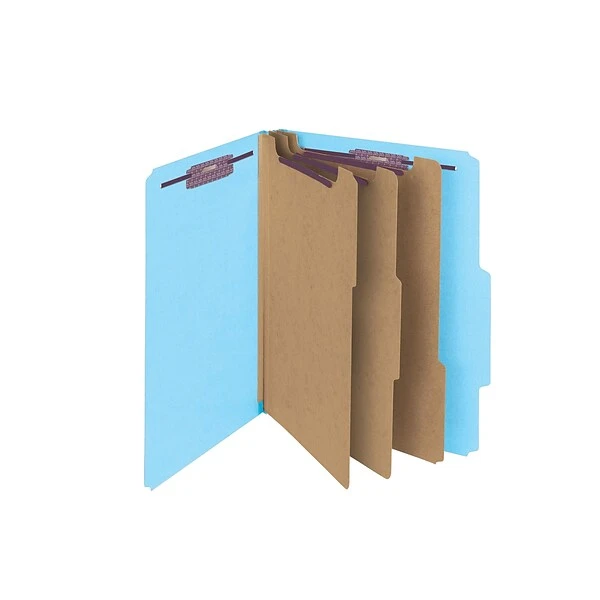 Organize even the bulkiest files with these Smead pressboard letter-size classification folders. Each folder has two SafeSHIELD fasteners to keep fingers safe from cuts while subdividing and securing documents. These Smead pressboard letter-size classification folders each have three dividers made of sturdy craft to provide a total of eight filing surfaces, so organizing giant, complex files is manageable.