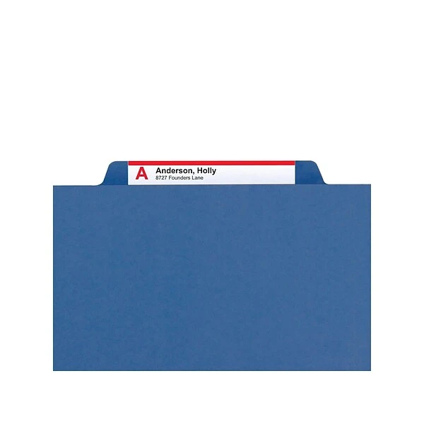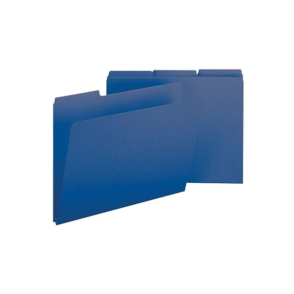 Let important files stand out against your manila folder system with these Smead dark blue pressboard file folders. The Tyvek accordion-pleat gussets with matching Tyvek tape provide a durable 1-inch expansion to accommodate thick stacks of documents. These Smead dark blue pressboard file folders feature 1/3-cut tabs in assorted positions, ensuring each tab is easy to see in your file drawers.
