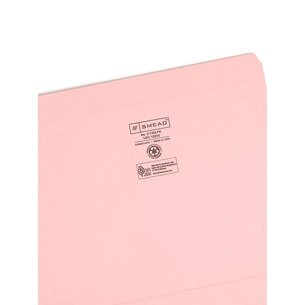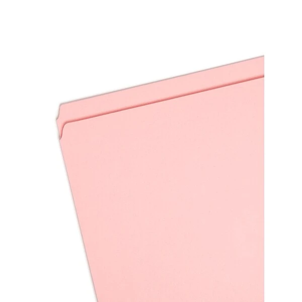 Keep file cabinets organized with these Smead letter-size manila file folders. The reinforced tab design resists bending and tearing, while the center-position tabs align neatly so labels are easy to read. Sturdy 11-point stock makes these folders ideal for everyday use in your busy office. With their slightly rounded corners, these Smead legal-size pink file folders resist catching on the inside of file drawers.