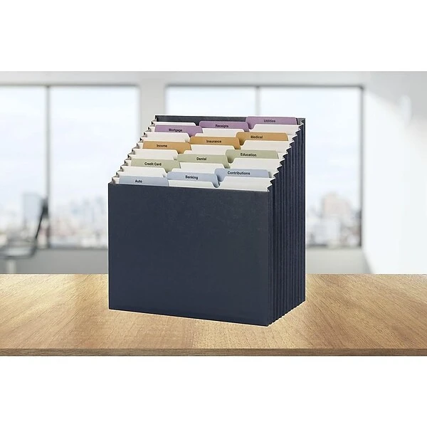 Access vital papers quickly in the workplace and home office with this expanding file folder featuring 12 tiered pockets. This accordion folder resists tears and maintains its durability. This portable Smead stadium expanding file comes with daily, monthly and alphabetic labels for extensive organization.