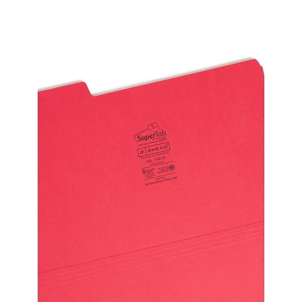 Protect your important documents and records by using the Smead SuperTab colored file folders, which are constructed with heavy-duty stock for added durability. Papers and other materials remain neat and secure, even when stored long-term or transported from one area of your office to another.