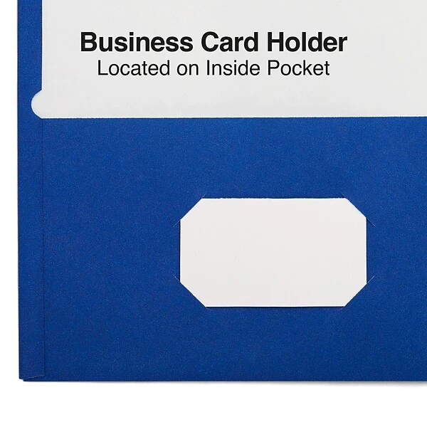 Choose these two-pocket folders for holding essential pieces of paper. Each folder has space to hold up to 50 sheets of paper, while the die-cut slot on the inside left pocket lets you insert a business card or ID for easy personalization or advertising. These Staples blue school-grade folders come in a box of 25, so there’s plenty to hand out to everyone.