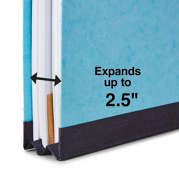 Find documents quickly when you sort them in these classification folders. The 1.75-inch expansion accommodates thick stacks of letter-size pages for added protection, while the divider and embedded fasteners allow for customized organization. A 2/5-cut tab layout lets you label contents for quick reference. These TRU RED letter-size light blue pressboard classification folders feature heavyweight construction to withstand daily wear and frequent use.
