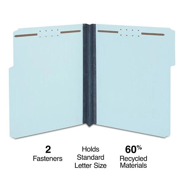 Manage office filing tasks efficiently with these fastener folders. Sturdy pressboard construction provides durability to handle frequent use, and the 2-inch expansion accommodates stacks of paper to consolidate files. Embedded fasteners make it easy to create a customized setup. With thoughtful dimensions, these Staples letter-size pressboard fastener folders accept standard pages to keep them protected from loss and damage.