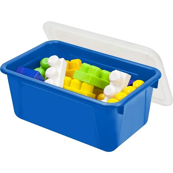 These small bins fit perfectly in classroom cubbies. They are also useful boxes for organizing your classroom. They are made of a drop resistant plastic which prevents cracking. Bright colors are ideal for STEM or STEAM organization. The clear lid is included. Perfect bin for shoes or even general storage.
