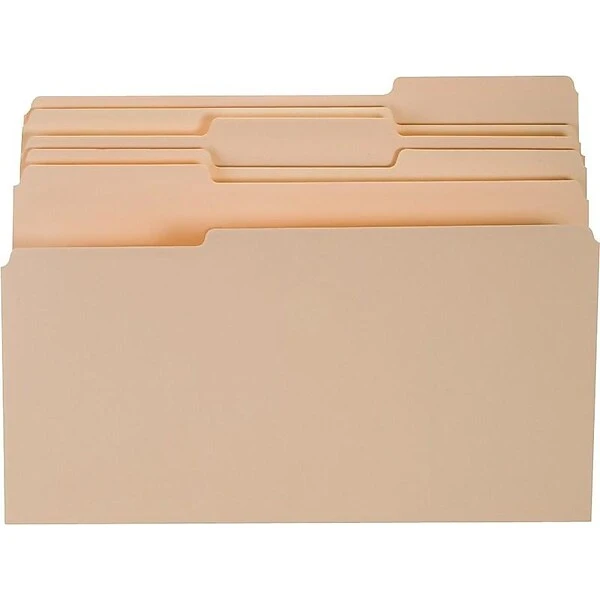 Thumb through these legal-size manila file folders and find needed documents quickly. Each folder is built with standard thickness manila stock for durability while the 1/3-cut tab design leaves ample space for writing in titles by hand or applying labels. These TRU RED top-tab manila file folders are scored for a 0.75-inch expansion, so they are ideal for holding bulky files.