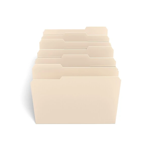 Eliminate paper clutter in your workspace with these file folders. The closed ends keep letter-sized documents secure, while the lighter shade on the inside helps keep related documents together for easy retrieval. These TRU RED 3-tab file folders feature a poly construction for durable use and have sliding tabs for easy review.