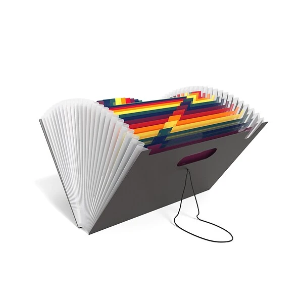 Coordinate all your forms and reports with this multicolor expanding accordion file. The plastic design is water-resistant and tear-resistant to protect stored documents from damage, while the multicolor pockets let you organize your paperwork for improved productivity. This TRU RED letter-size 25-pocket multicolor plastic expanding accordion file has a full elastic top closure for keeping your files in place and 25 pockets for a handy document storage option.