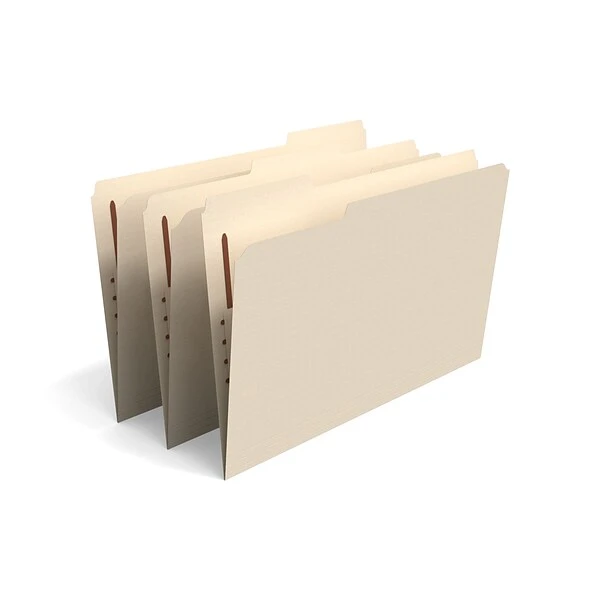 Keep paperwork neatly arranged for quick reference with these fastener folders. The convenient dimensions accommodate legal-size documents to meet a range of filing and organizational needs, while the embedded fastener lets you create a customized sorting system. Heavyweight construction delivers added durability, making each folder ideal for reuse. With a 1/3-cut tab layout, these TRU RED legal-size manila fastener folders provide space for subject labels.